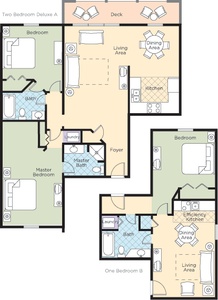 The two room unit was very spacious for two family. Their pool and activity center are really nice. Our kids enjoyed the pool and the fire pit very much! Really nicely planned resort.